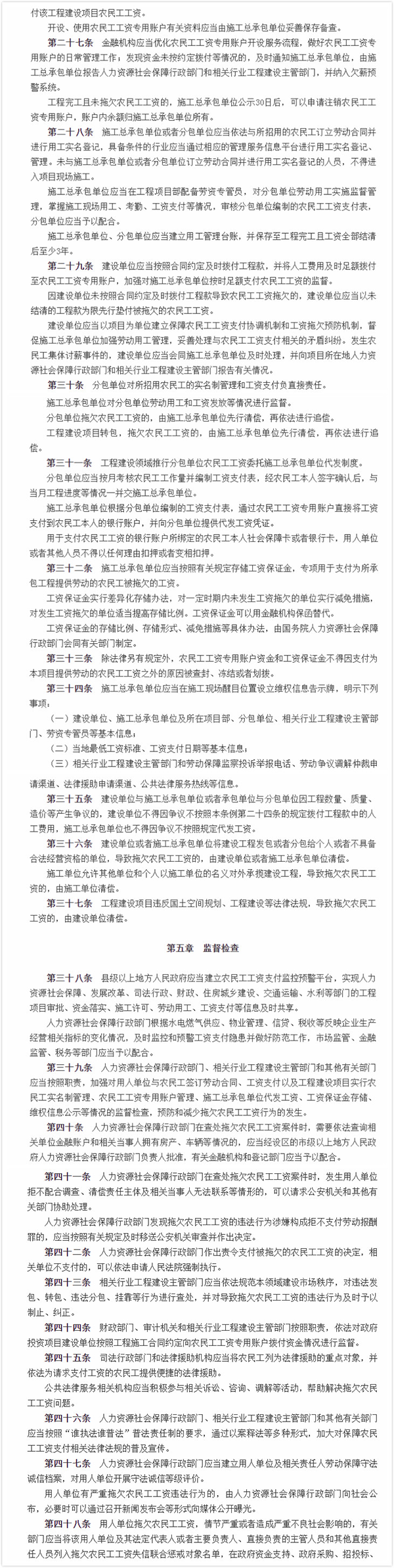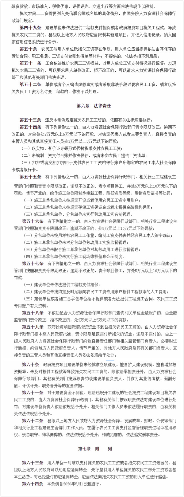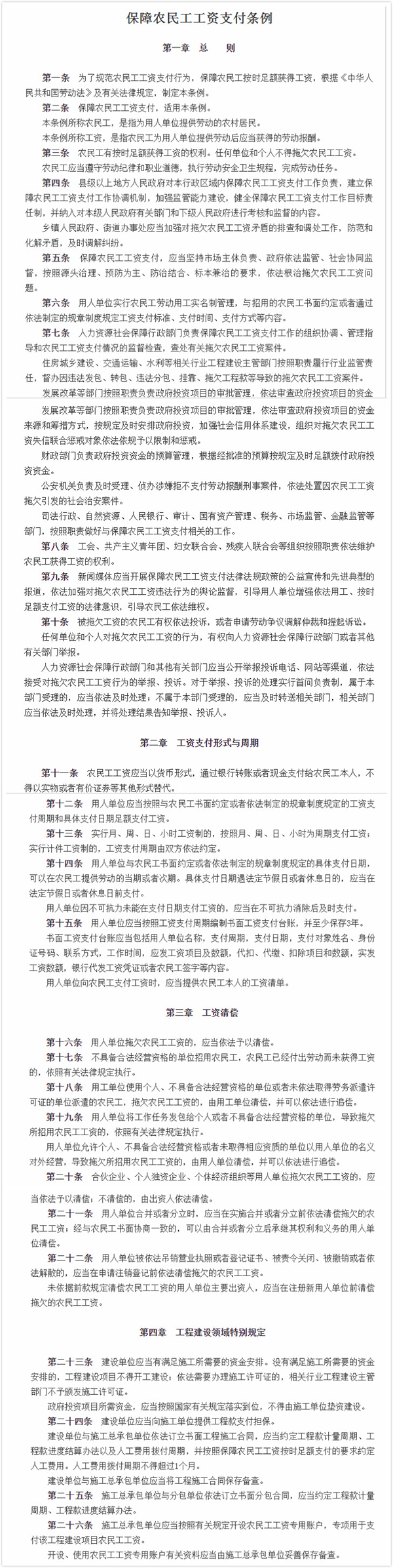 《條例》是我國迄今為止工資支付方面的最高層次立法,為保護(hù)廣大農(nóng)民工的合法權(quán)益提供了堅(jiān)實(shí)的法治保障,是推進(jìn)保障農(nóng)民工工資支付工作法治化、規(guī)范化的重要標(biāo)志。